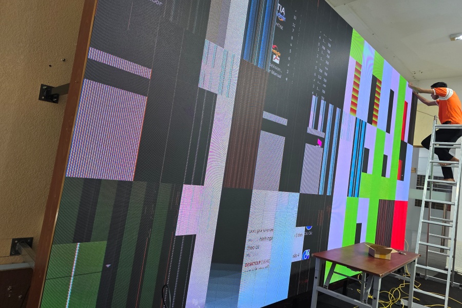 Màn hình LED mang lại chất lượng hiển thị sắc nét, màu sắc sống động, góp phần làm nổi bật nội dung trình chiếu. Đội ngũ kỹ thuật viên đang làm việc cẩn thận để đảm bảo hệ thống hoạt động ổn định, tối ưu hóa trải nghiệm cho người dùng. Đây là một dự án quan trọng, không chỉ cải thiện cơ sở vật chất mà còn thúc đẩy việc ứng dụng công nghệ vào môi trường giáo dục.